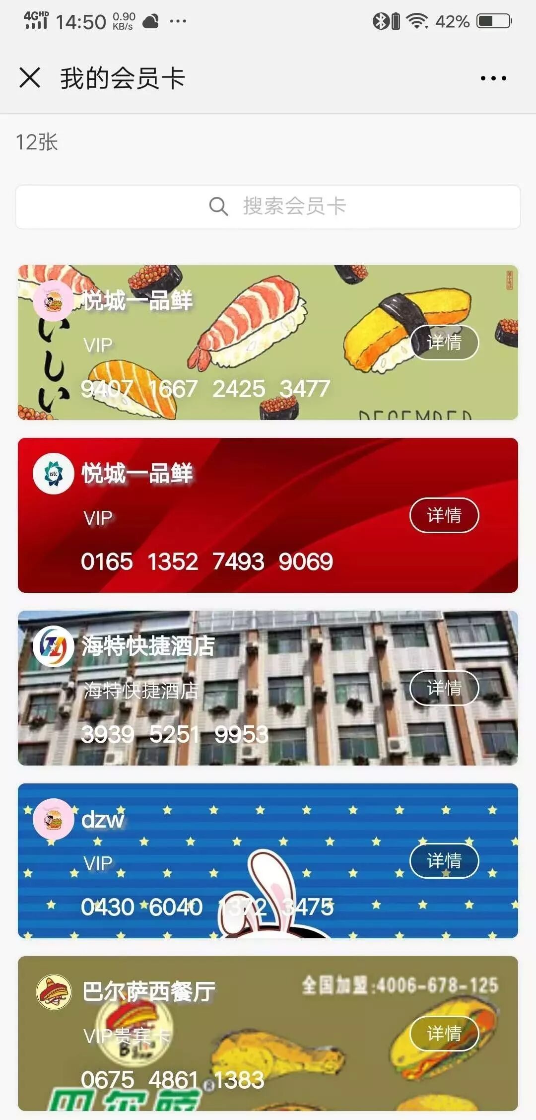 b、左上角显示卡片总数,小伙伴们一定都是商户的会员,这个数字就是你做项目的成绩;