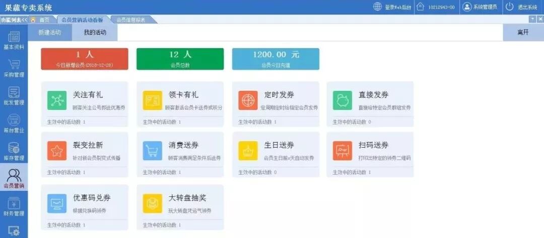 b、会员营销活动看板增加【今日新增会员】、【会员总数】、【会员今日充值】;