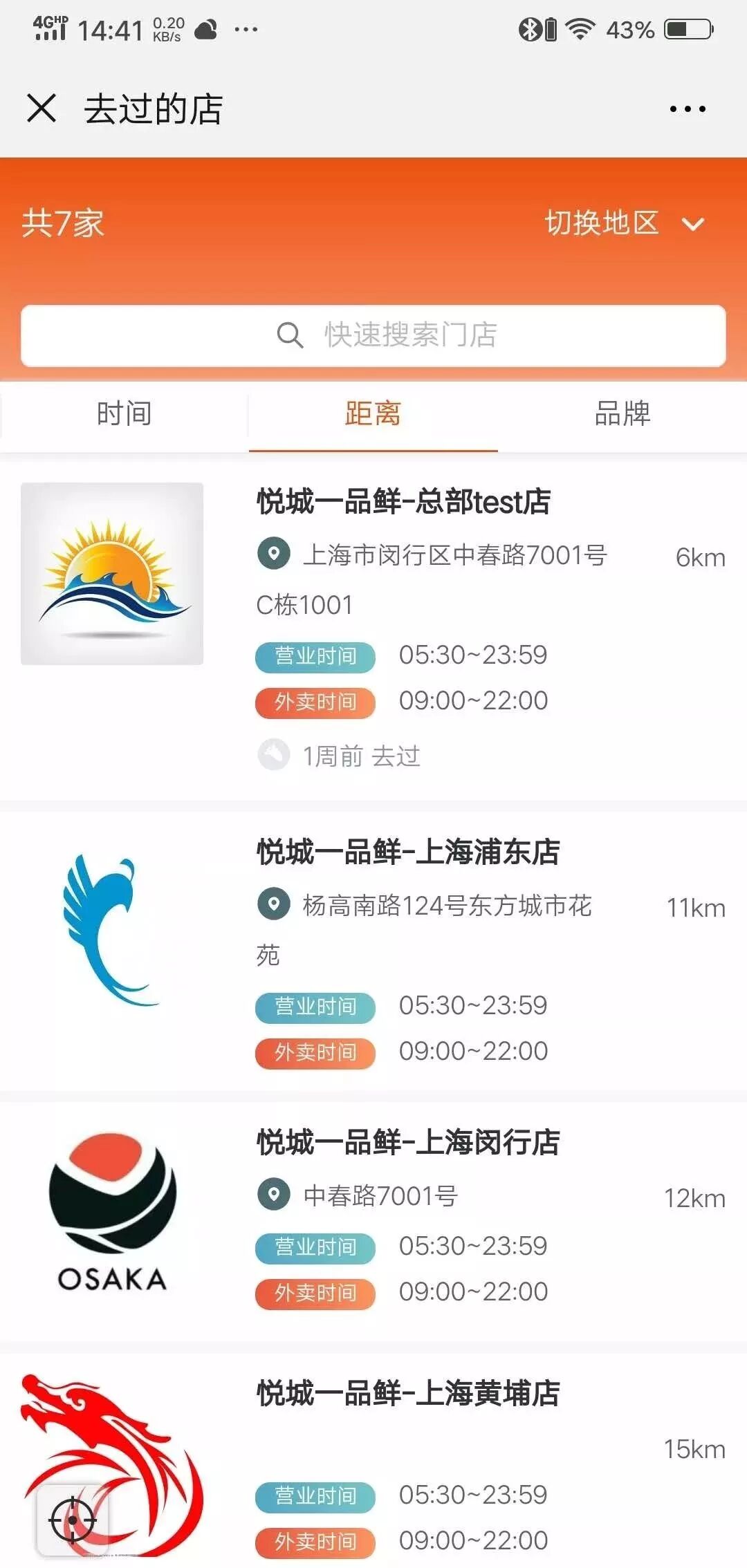 b、可按时间、距离、品牌来排序,方便找到自己最想去的店;