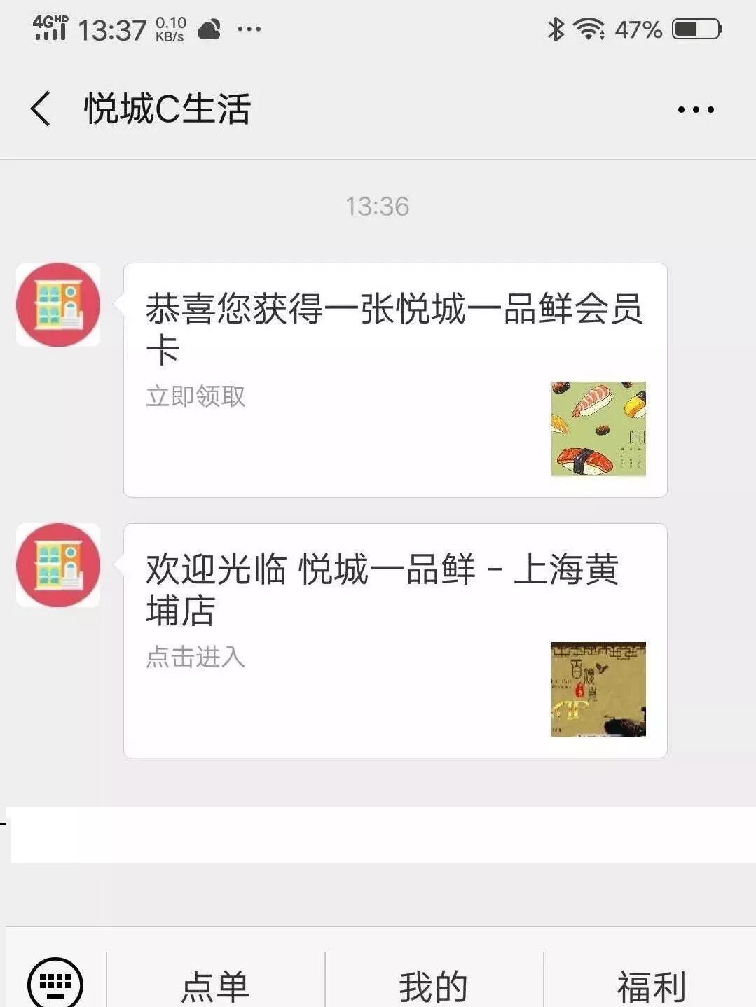a、商家无需申请公众号、可直接共享使用大公号【悦城C生活】,享受微会员营销全套功能;