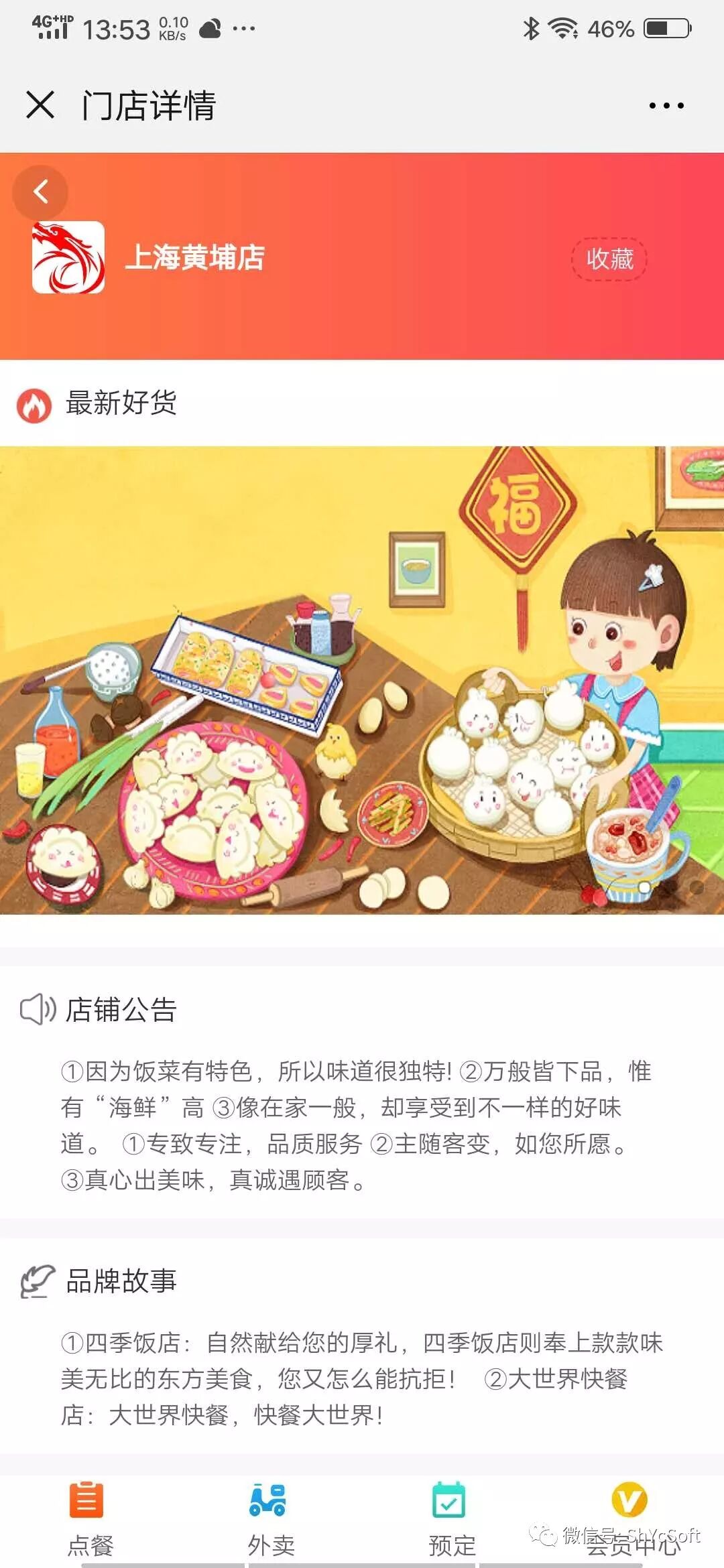 c、显示店铺公告和品牌故事(后台可设置),彰显店家魅力;